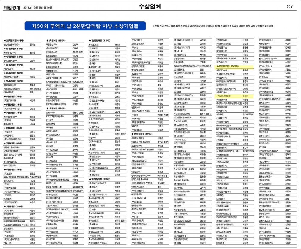 Won the Twenty Million Dollars Export Tower (Korea International Trade Association) - 2013